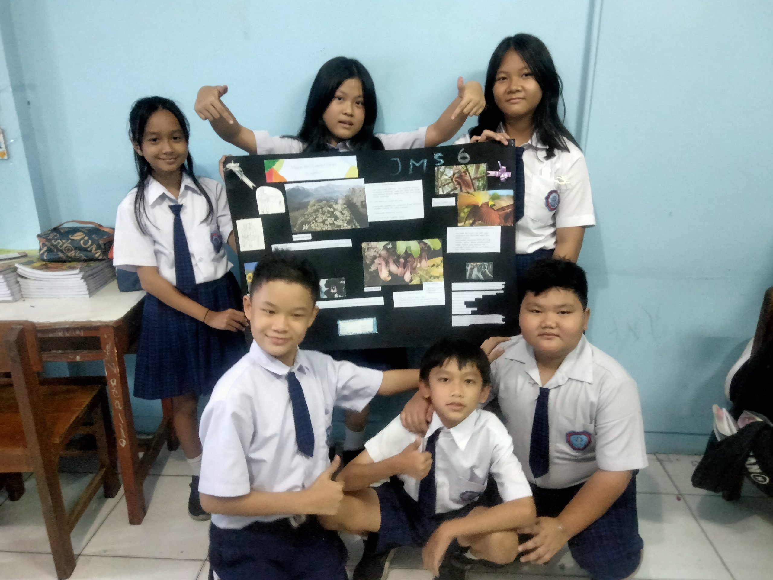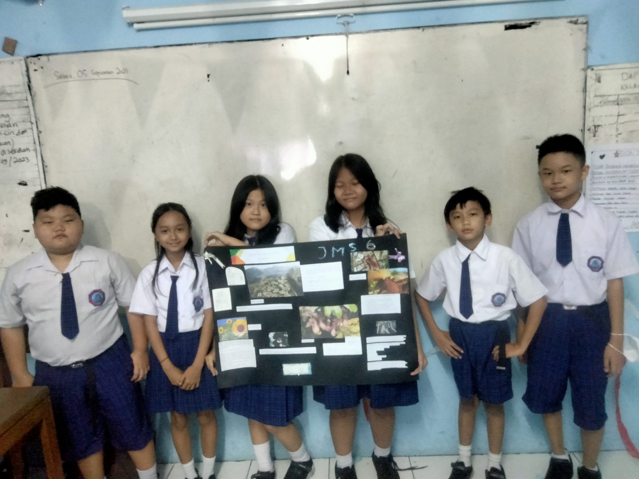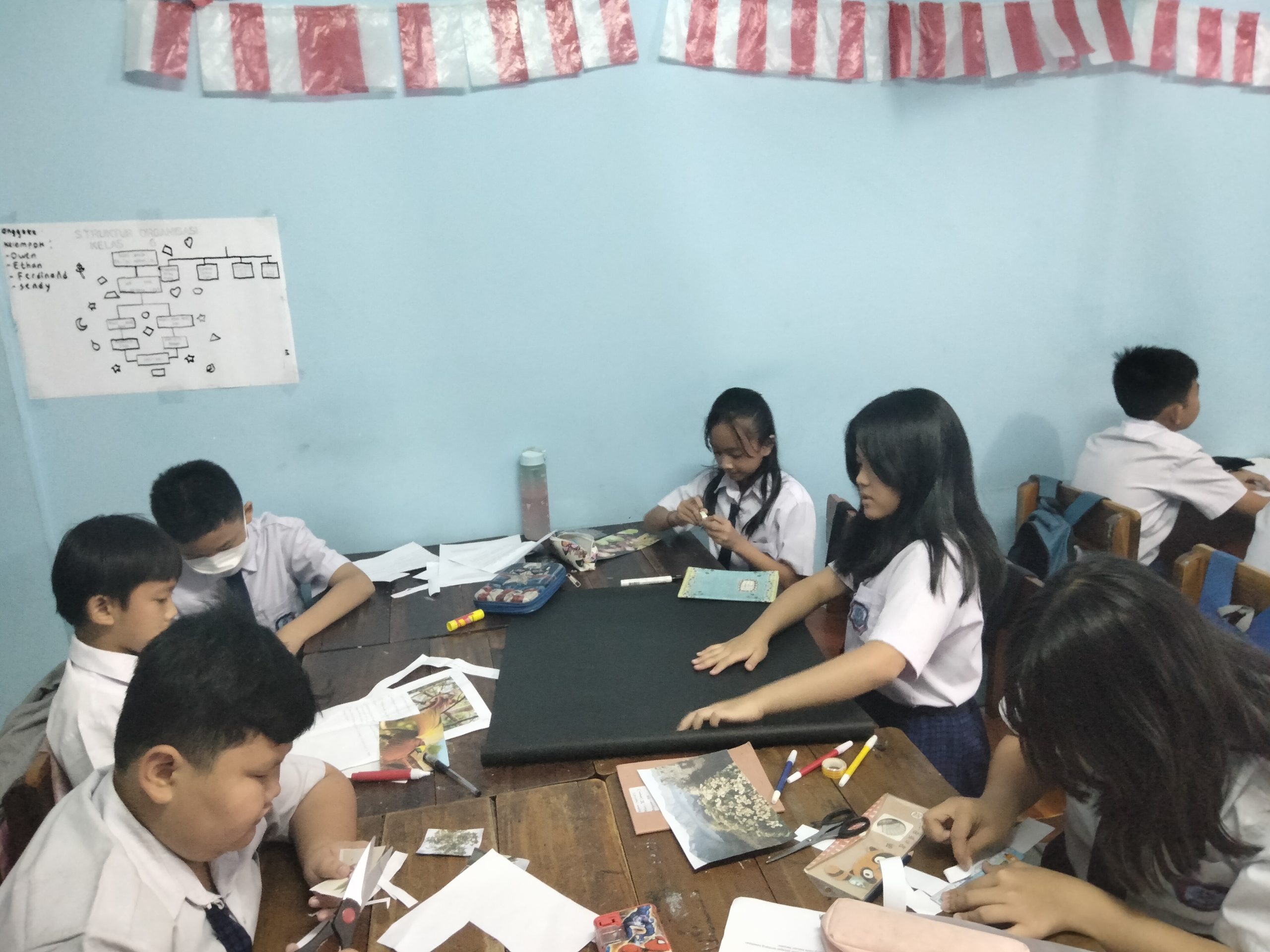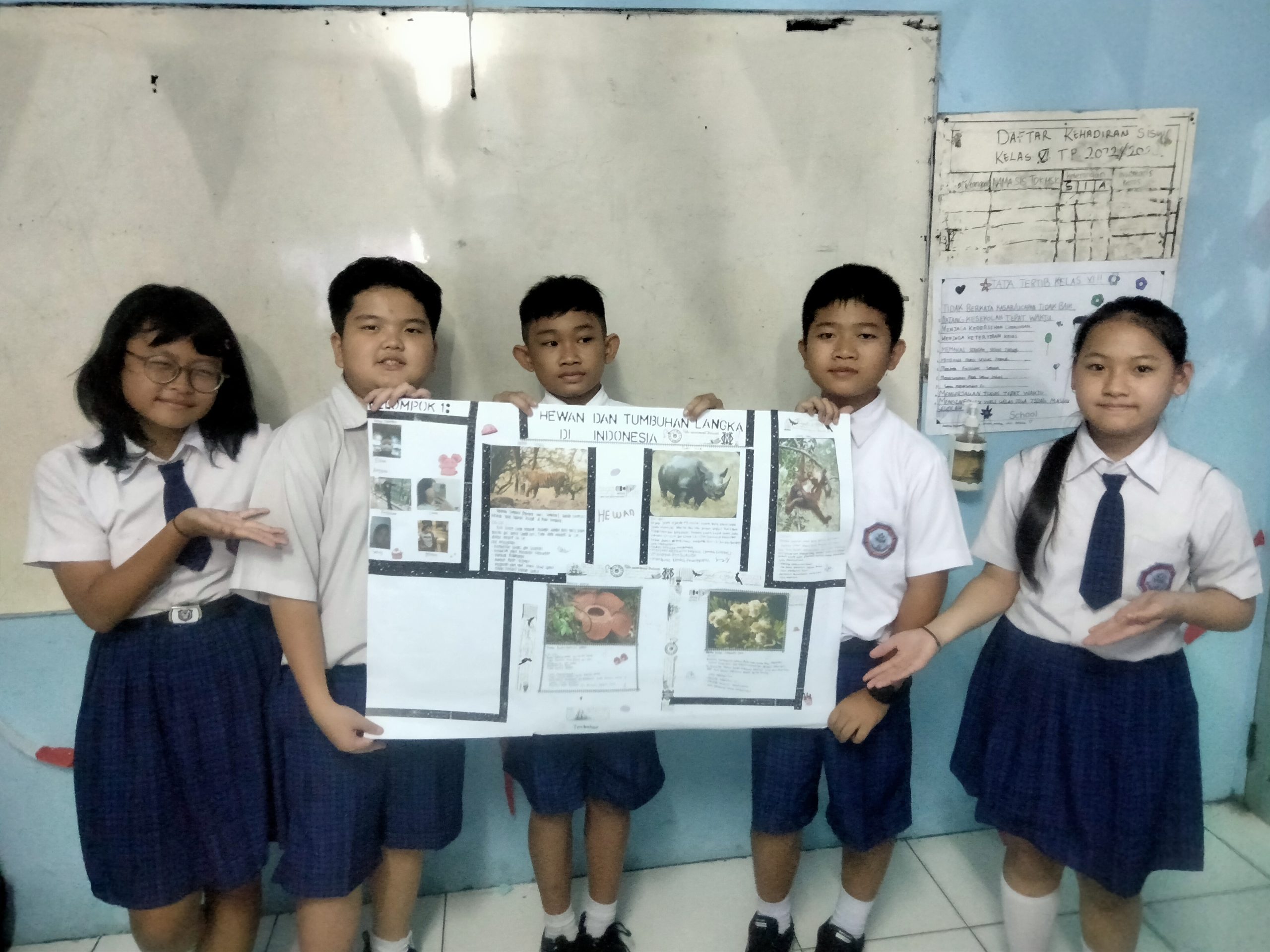 Siswa-siswi SD kelas 6 membuat mading tentang Flora dan Fauna yang langka pada hari Jumat, 8 September 2023.