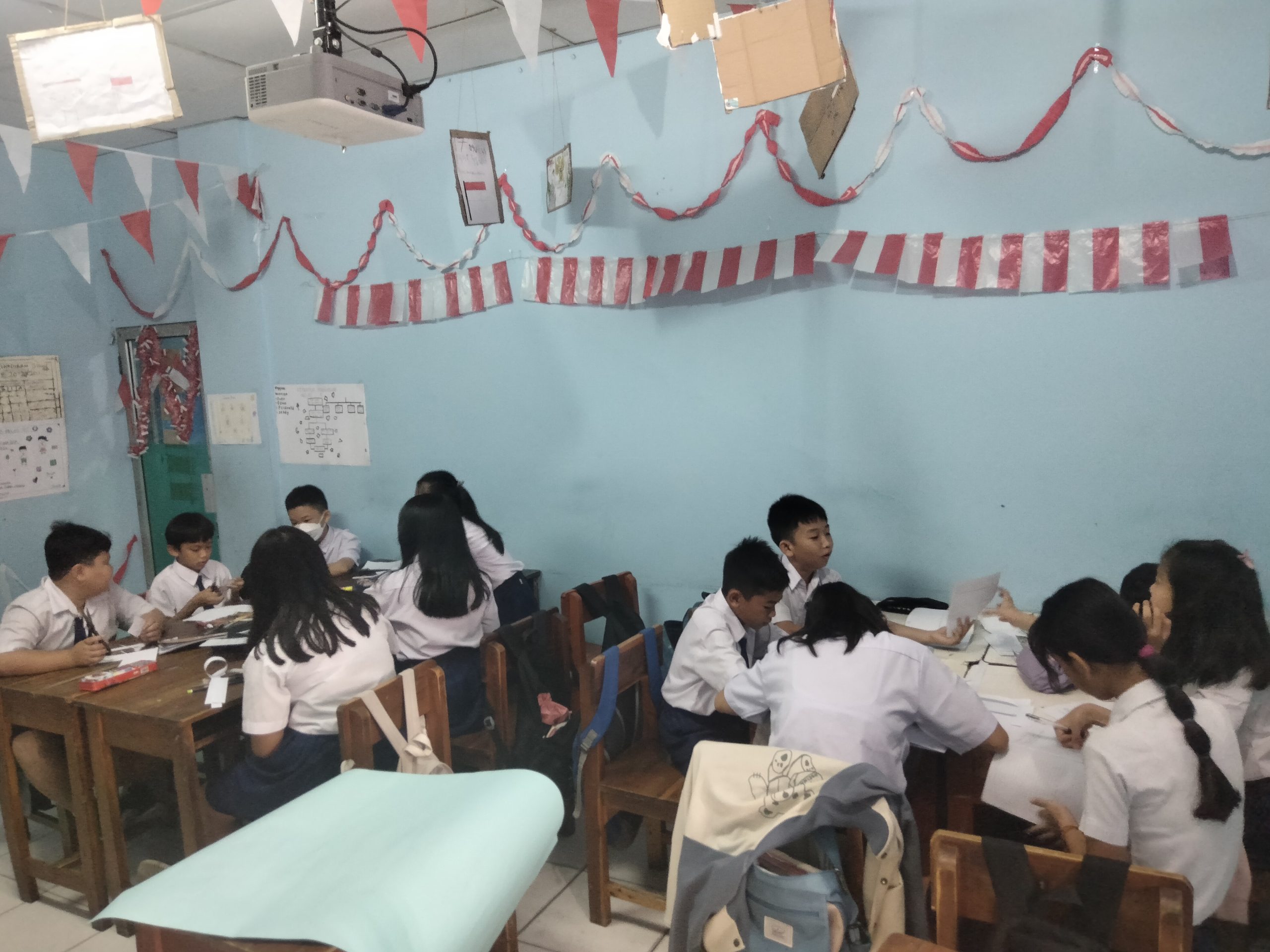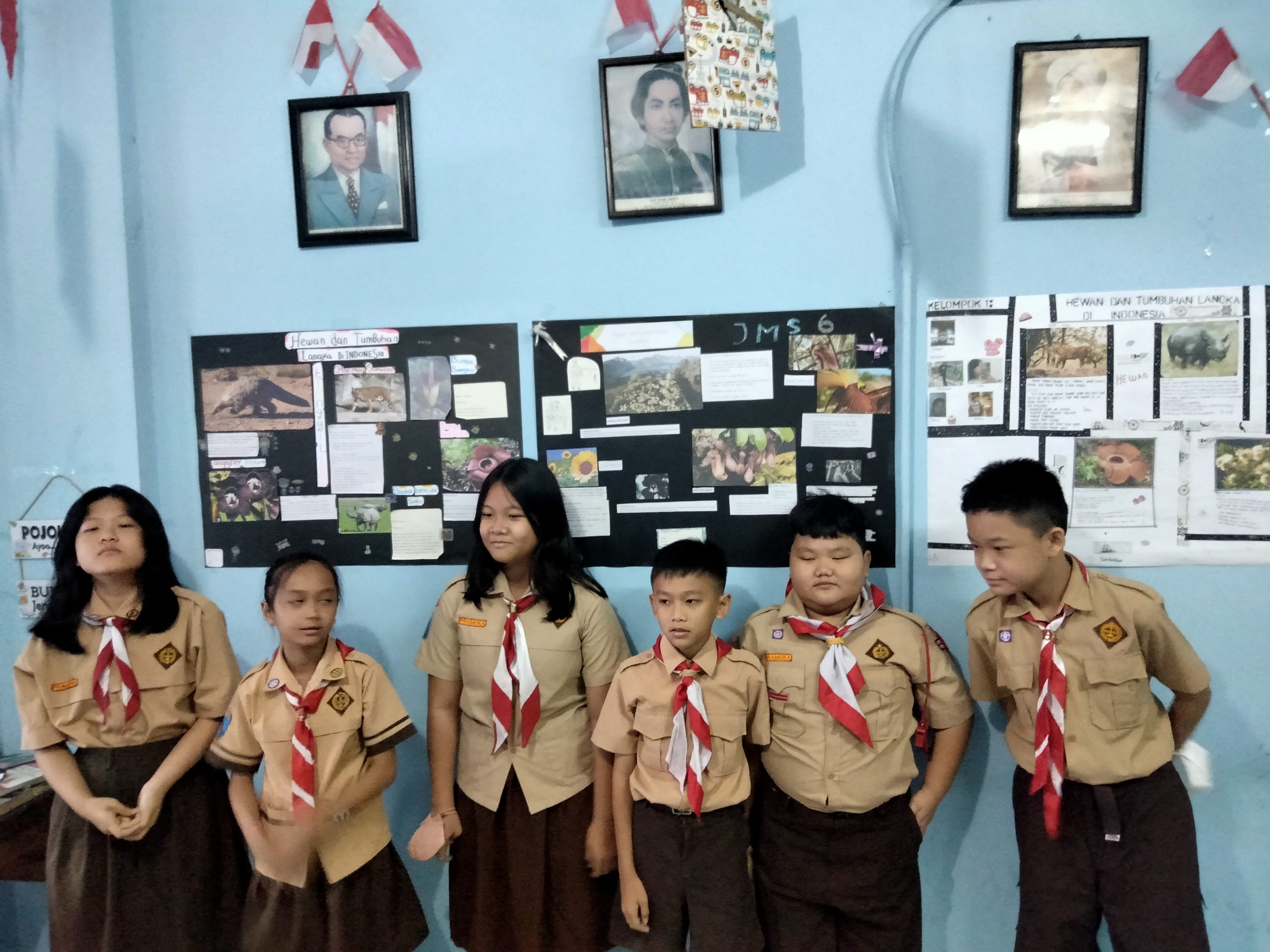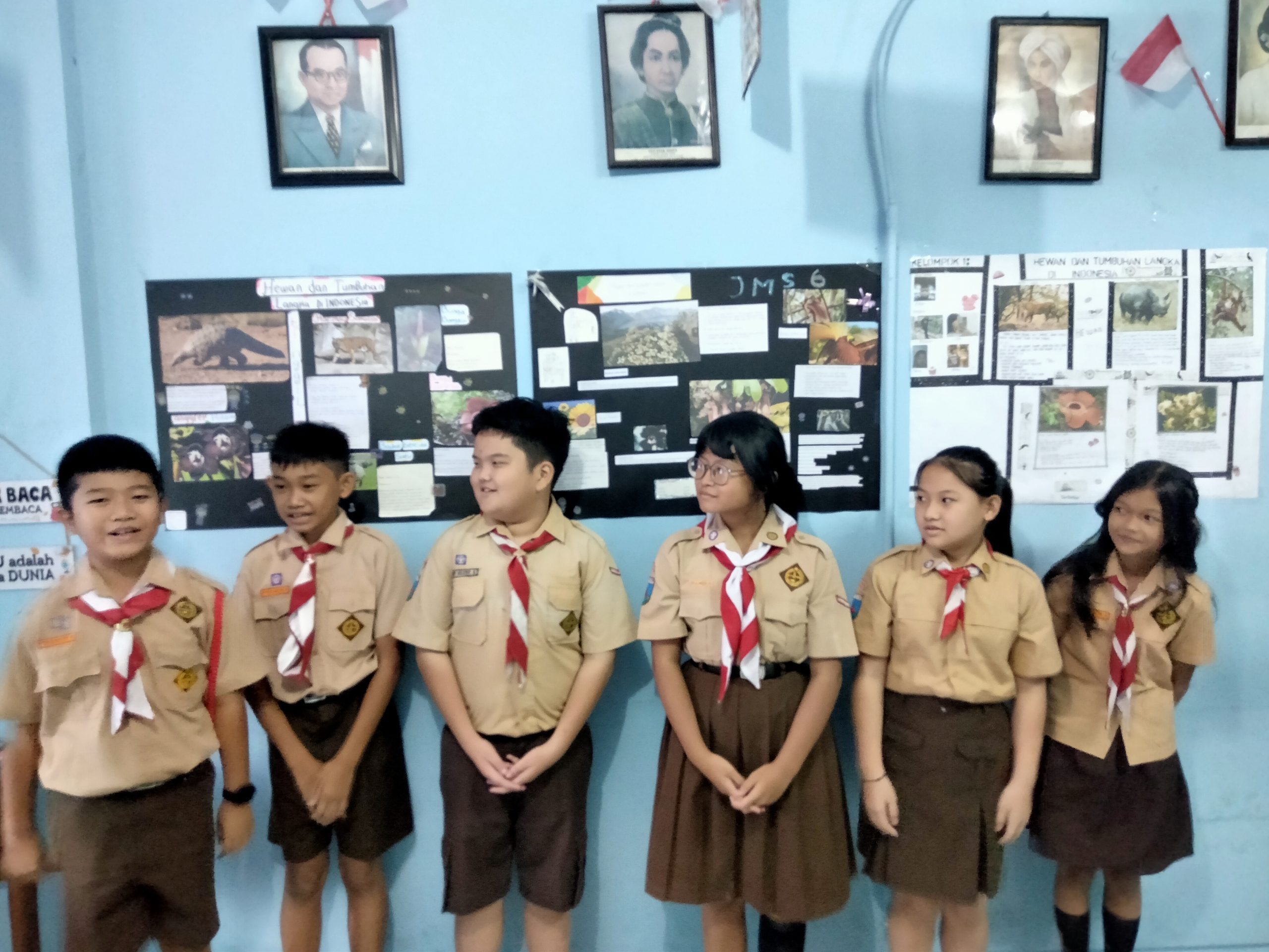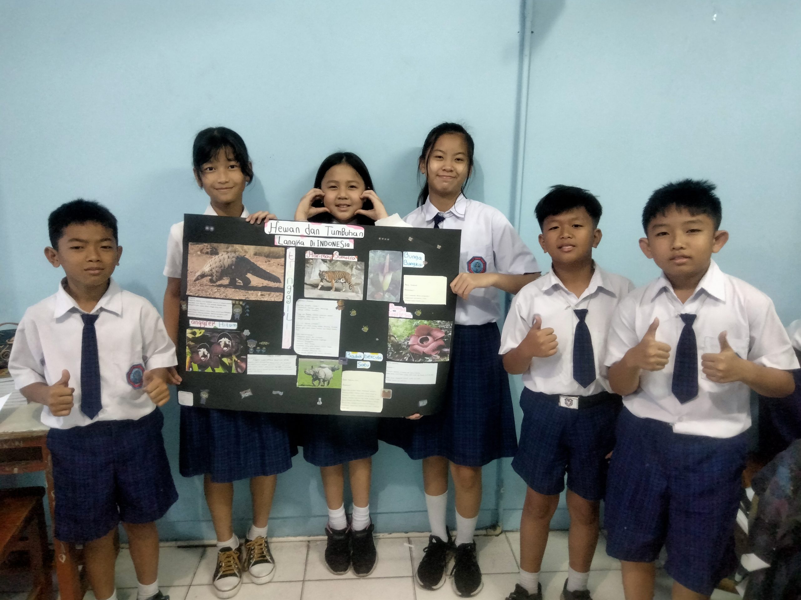 Siswa-siswi SD kelas 6 membuat mading tentang Flora dan Fauna yang langka pada hari Jumat, 8 September 2023.
